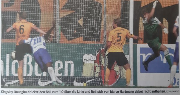 In der zweiten Spielhälfte gelang den Zebras jedoch wesentlich mehr, das Angriffsspiel bekam mehr Tempo und es konnten sich mehr Tormöglichkeiten erspielt werden. Nach 67 Minuten war es dann soweit, der "King" Onuegbu konnte den Ball zur verdienten MSV-Führung im Kasten unterbringen.