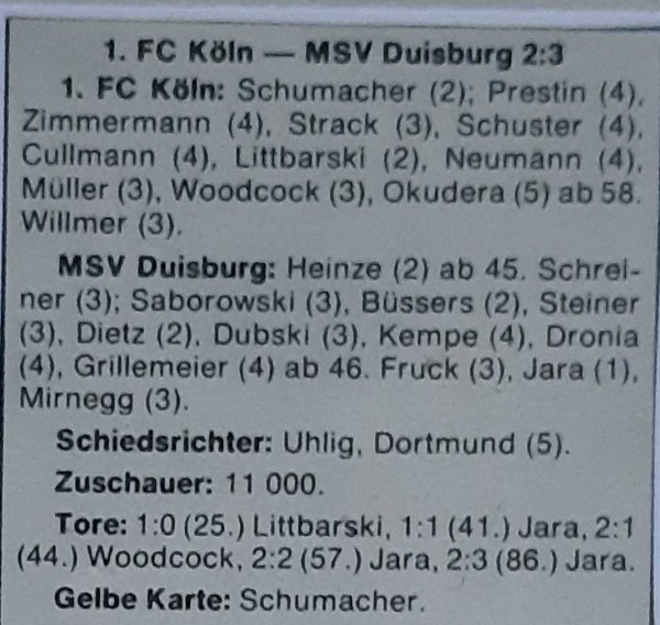 Seine letzten Tore erzielte Kurt Jara in der Saison 1979/80 im Spiel beim den 1.FC Köln. Die Zebras gewannen mit 3:2 und Kurt erzielte dabei drei (!!!) Treffer. Damit war der Weg zum Klassenerhalt geebnet.