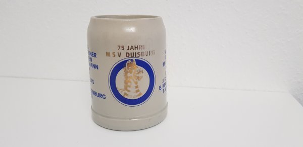 Dieser Krug wurde zum Jubiläum des MSV Duisburg verkauft. Auf dem Krug befinden sich die Spieler der Saison von 1977/1978